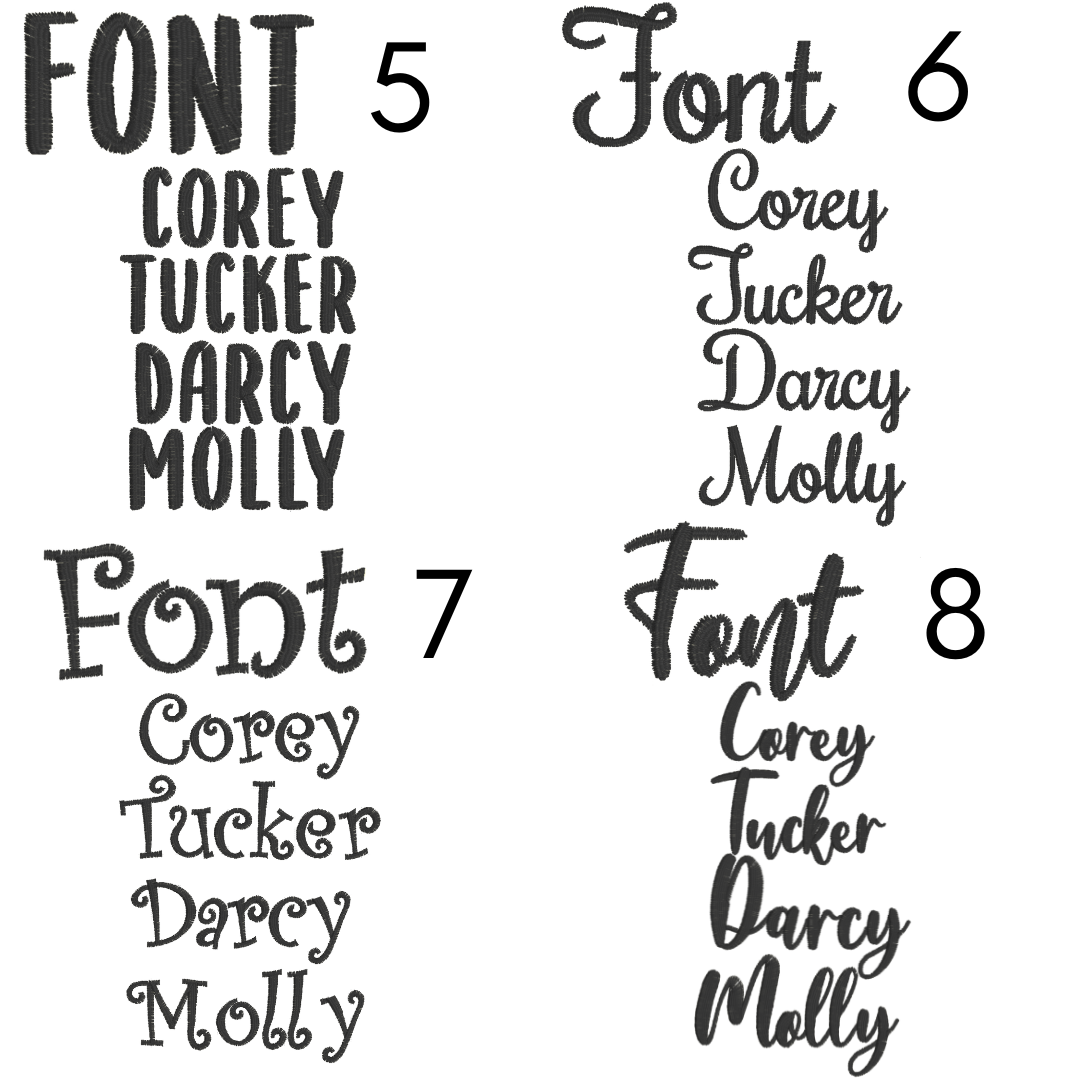 First, please choose the desired bandana color and font. Then, add your pet's name in the "Name" section. (The color Navy sample image is coming soon)