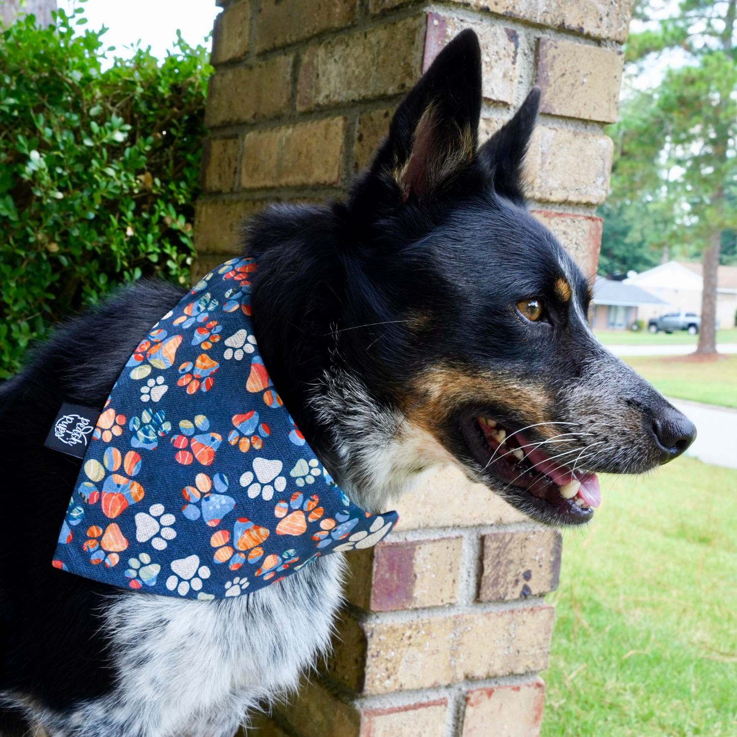 This bandana slips onto your dog’s collar. This means you are not measuring the entire width of your dog's neck in order to determine sizing. Refer to our sizing below.